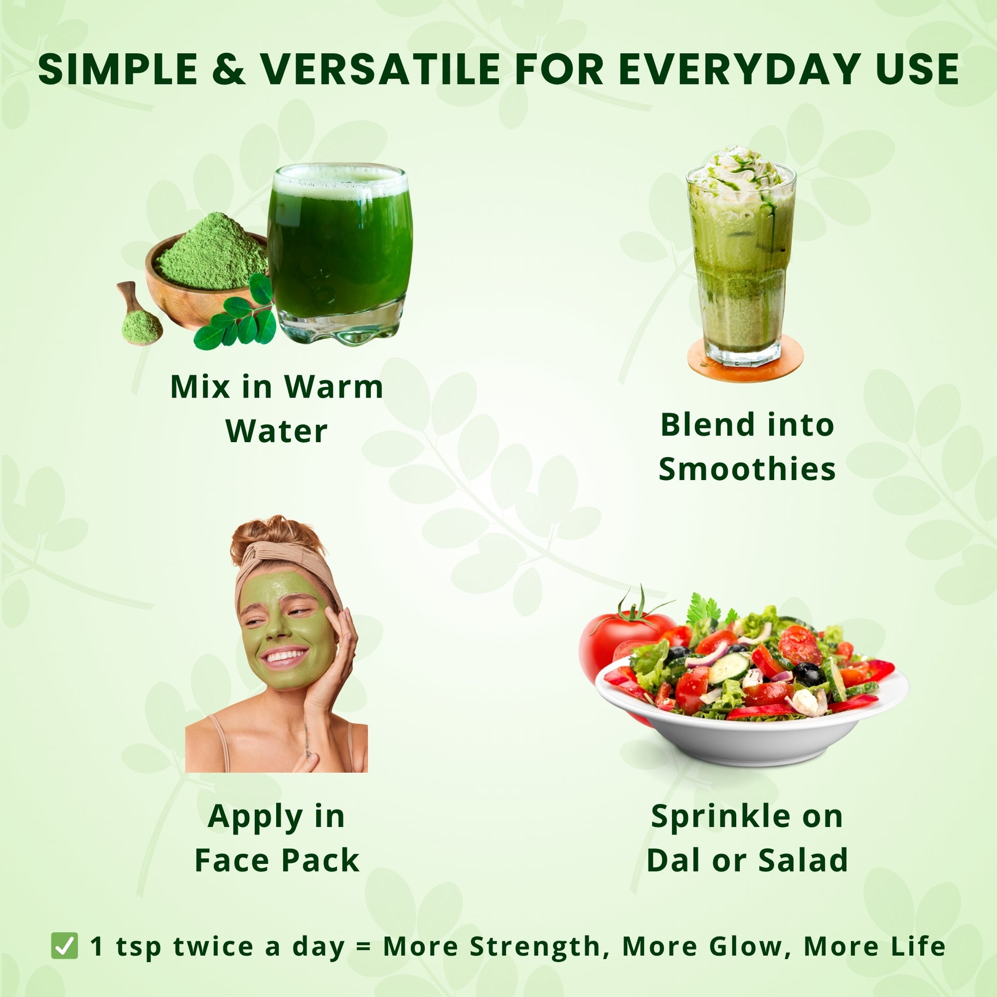 - 🌱 100% Pure – Only shade-dried moringa leaves. No fillers. No fluff.