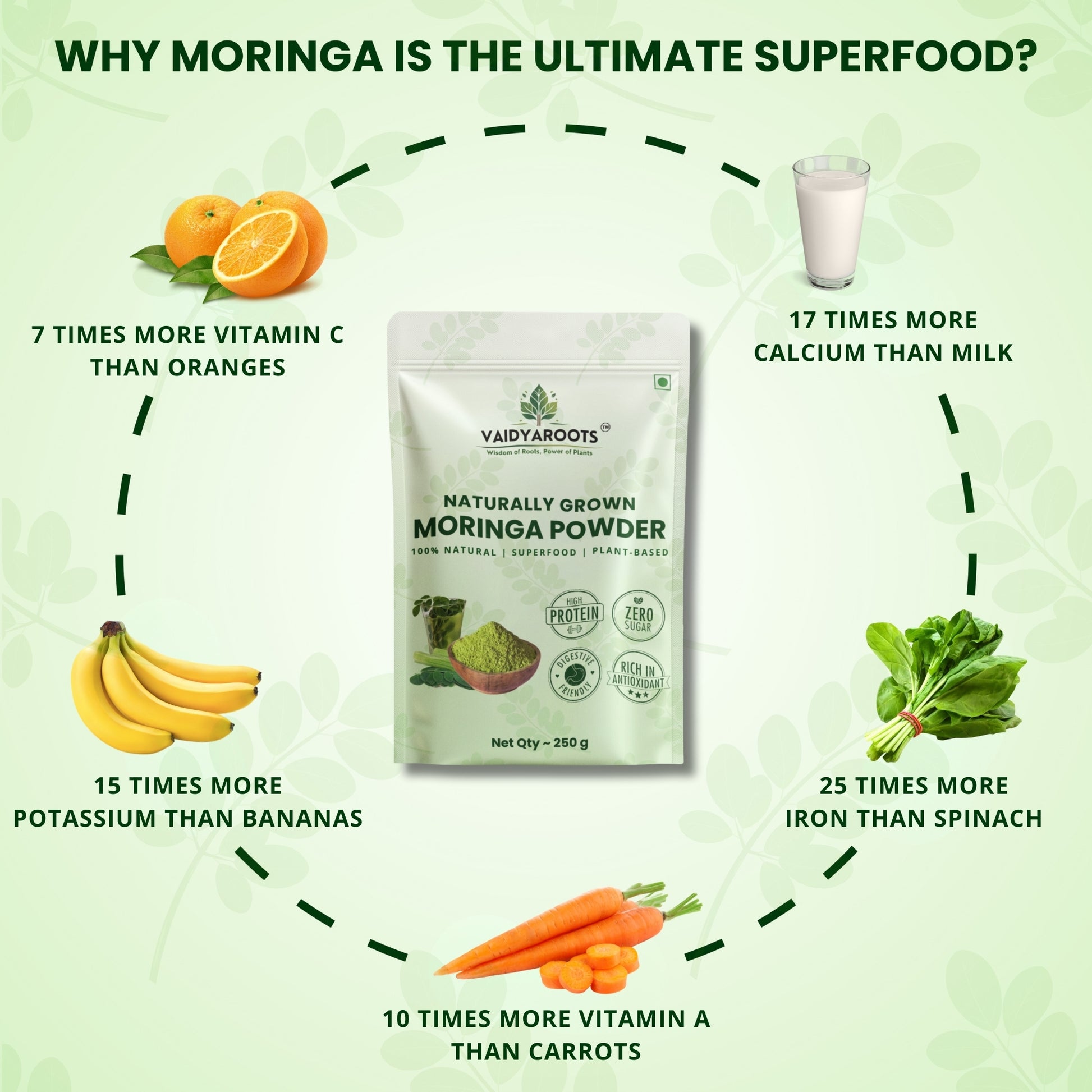 VaidyaRoots Moringa Leaf Powder – 250g | Superfood for Energy, Immunity & Detox