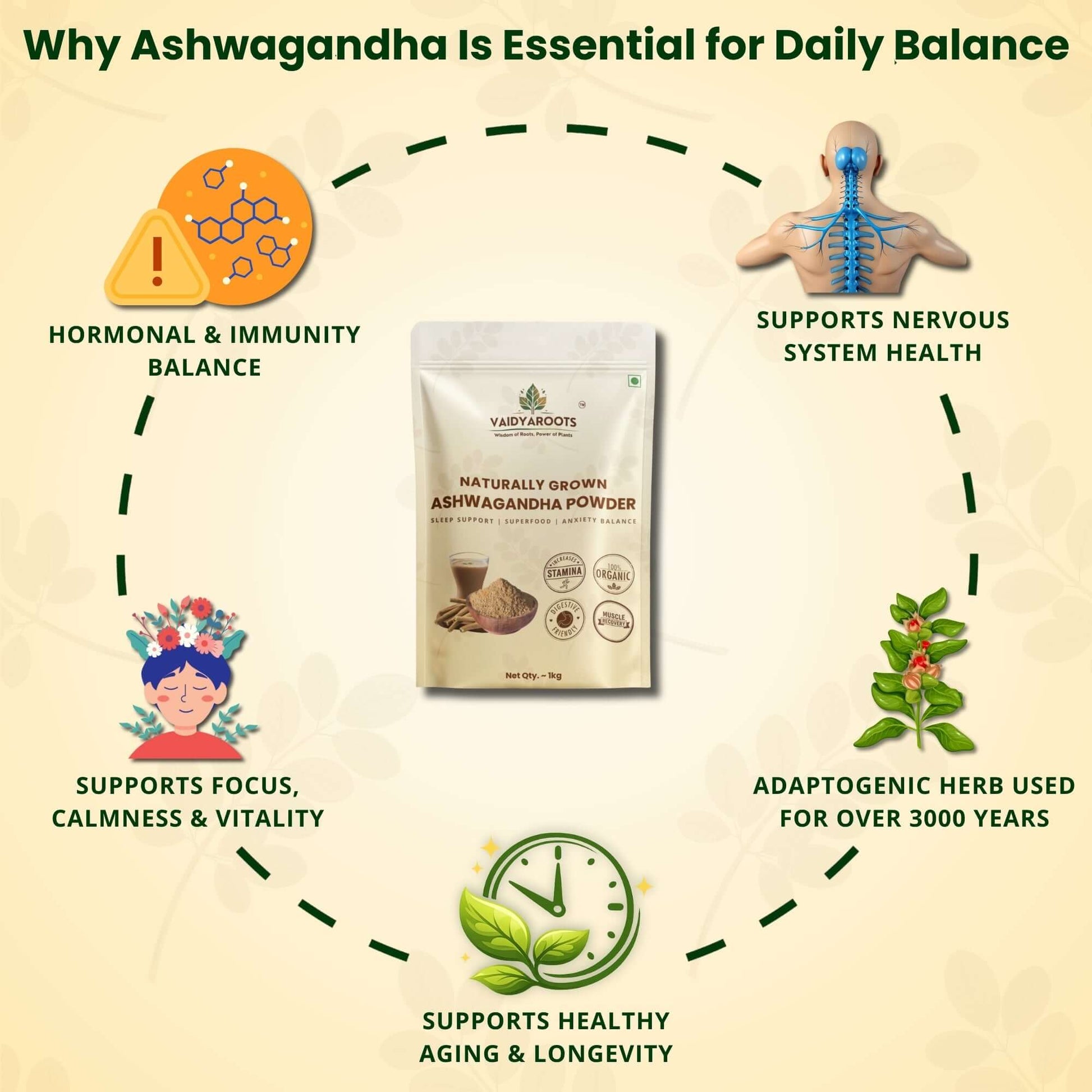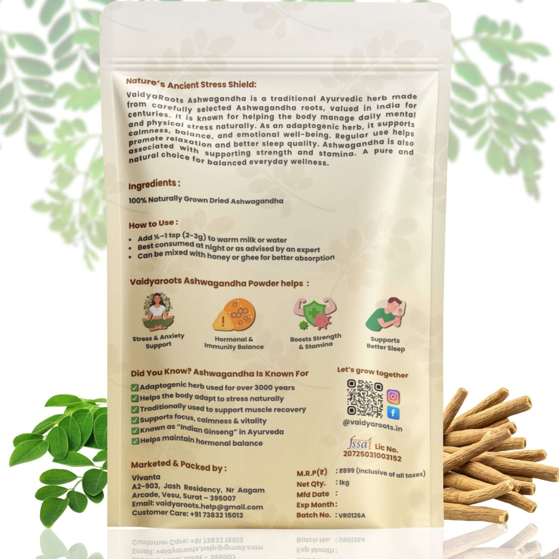 VaidyaRoots Ashwagandha Root Powder | Superfood for Stress Relief, Better Sleep & Stamina Support | Withania Somnifera | Lab Tested
